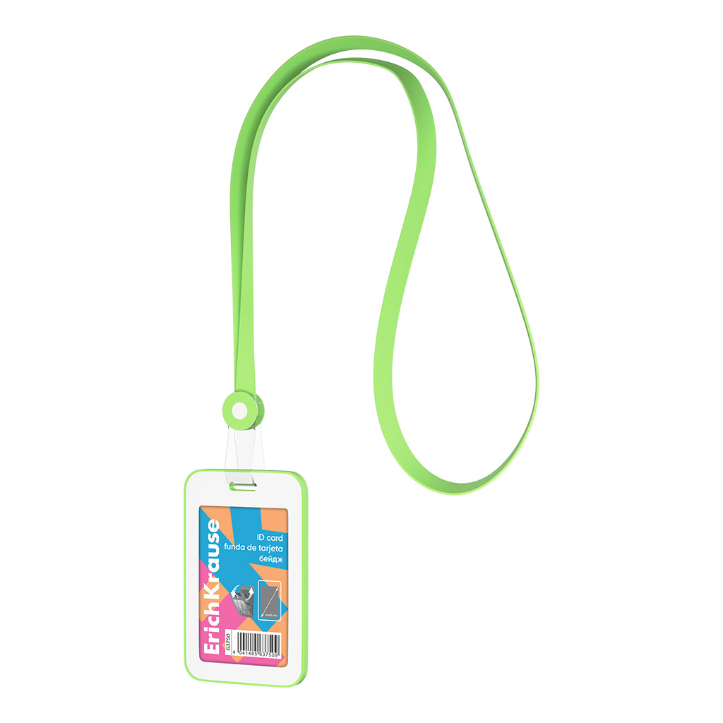 Бейдж вертикальный в комплекте с силиконовой лентой ErichKrause Neon книжка, размер вставки 54х85 мм, зеленый (в пакете) |
