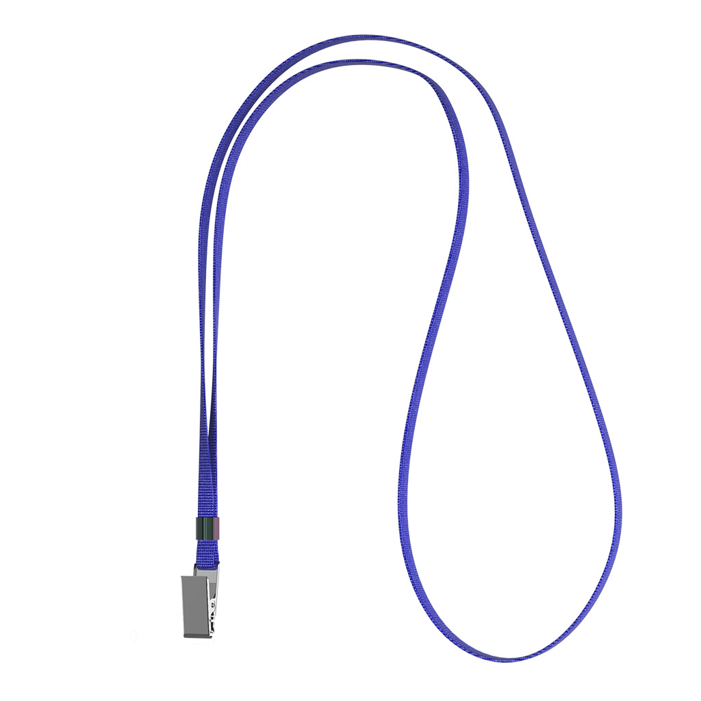 Лента для бейджа синего цвета. Лента изготовлена из полиэстера, имеет металлический зажим. Ширина ленты составляет 12мм. Лента идеально подходит к бейджам следующих артикулов: 63707, 63708, 63709,63710,63711, 63712,63713,63714. |