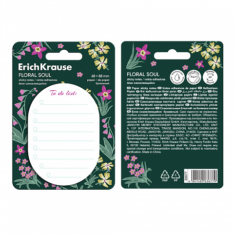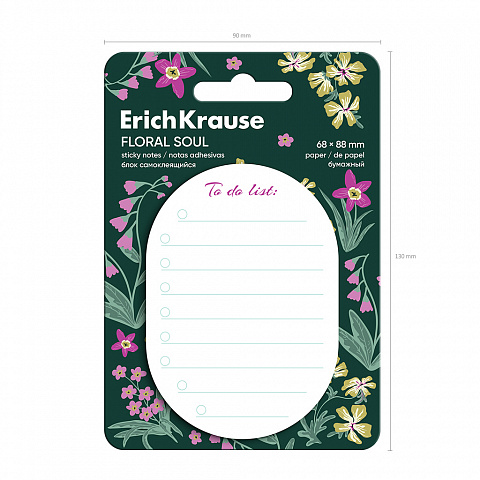 Блок самоклеящийся бумажный ErichKrause Floral Soul To do list, 68х88 мм, 60 листов, белый |