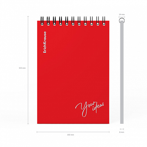 Блокнот с пластиковой обложкой на спирали ErichKrause Words, красный, A6, 80 листов, клетка