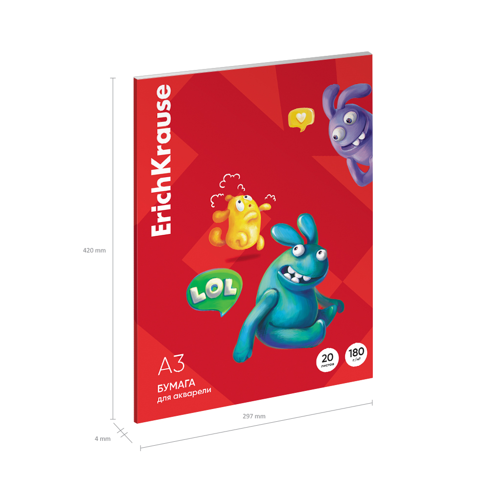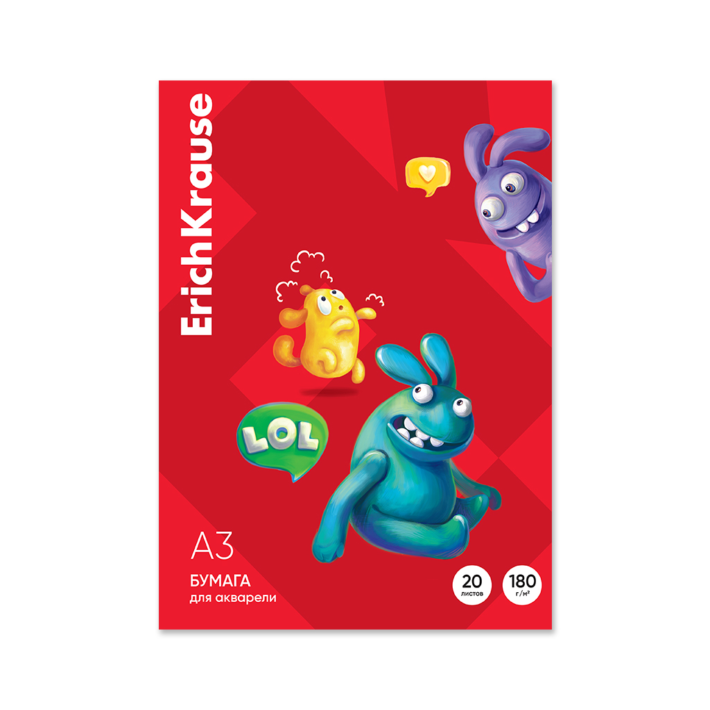 Бумага для акварели в картонной папке ErichKrause Jolly Friends, А3, 20 листов