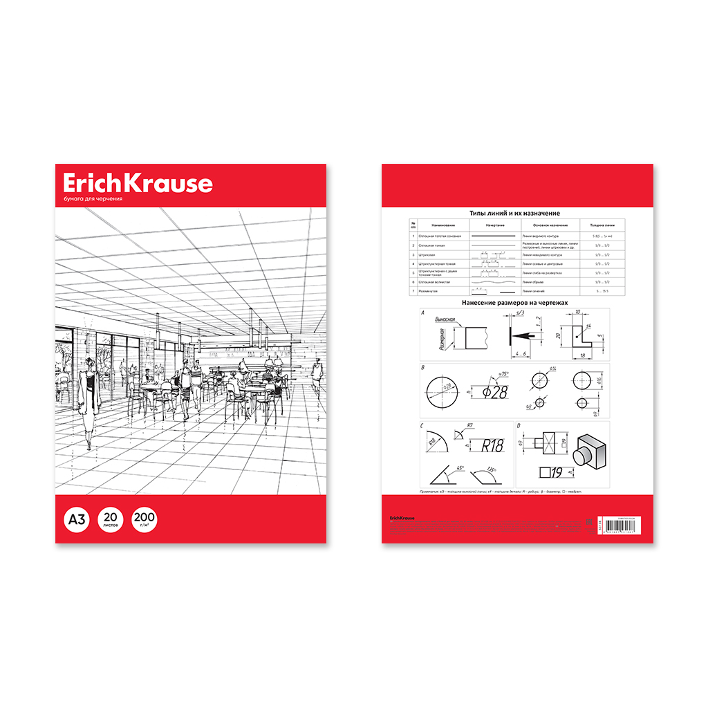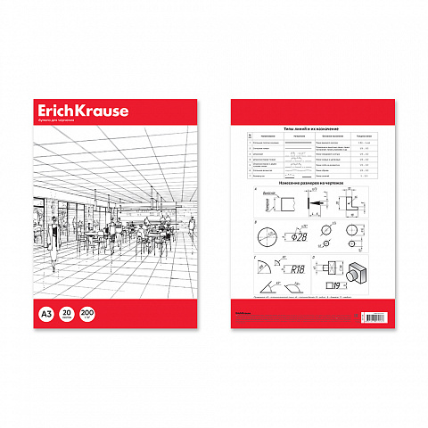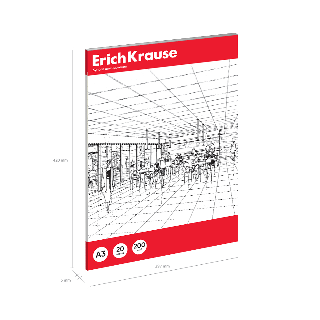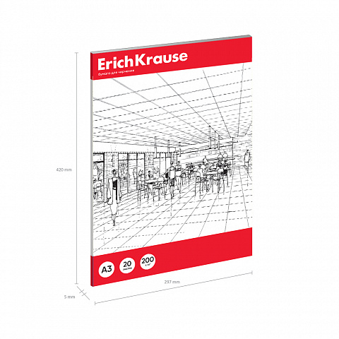 Бумага для черчения в картонной папке ErichKrause, А3, 20 листов, без рамки |