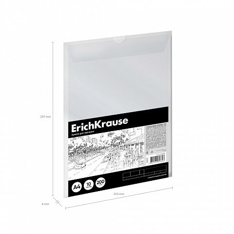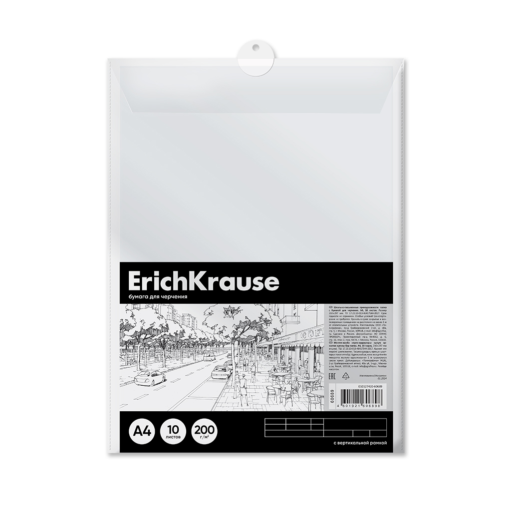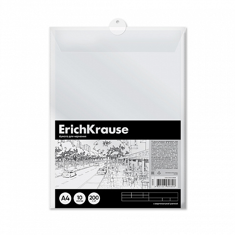 Бумага для черчения в пластиковой папке ErichKrause, Art, А4, 10 листов, вертикальная рамка |