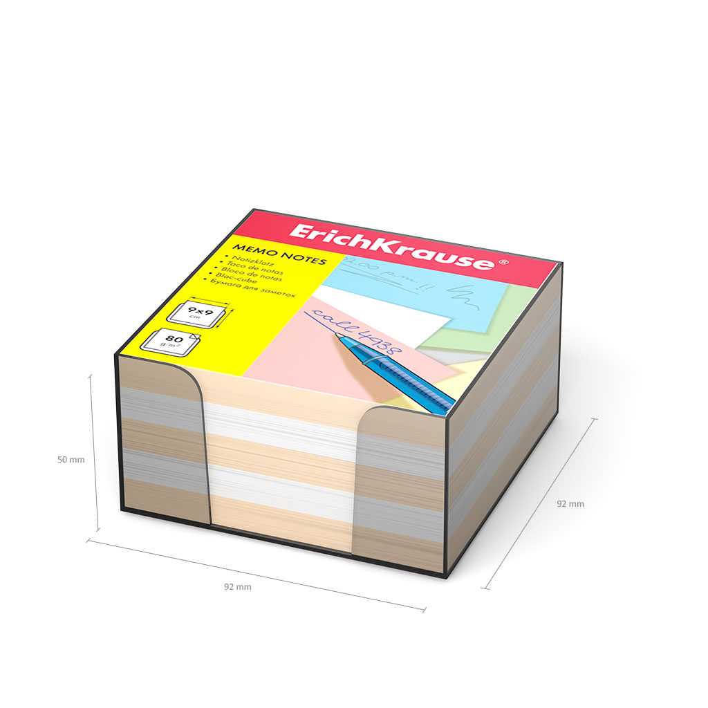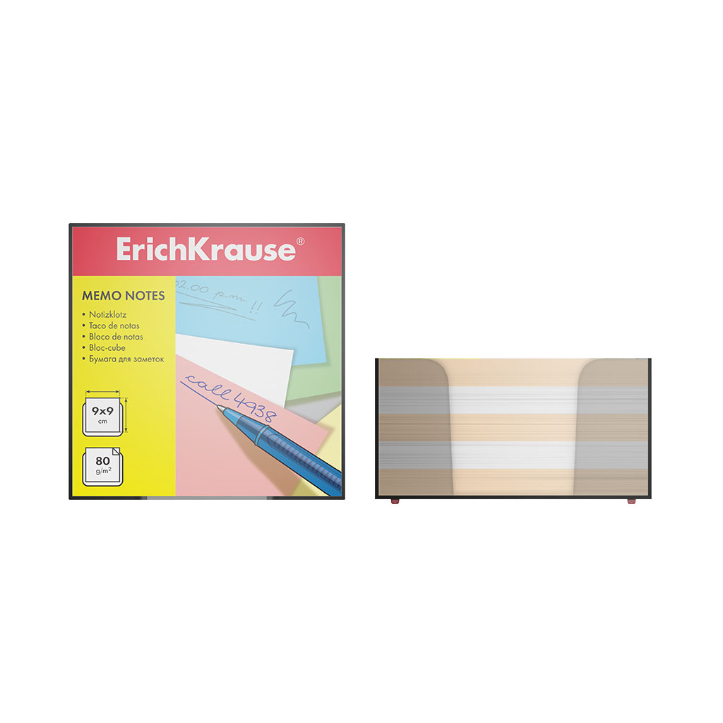 Бумага для заметок ErichKrause, 90x90x50 мм, 2 цвета: белый, персиковый, в пластиковой подставке |