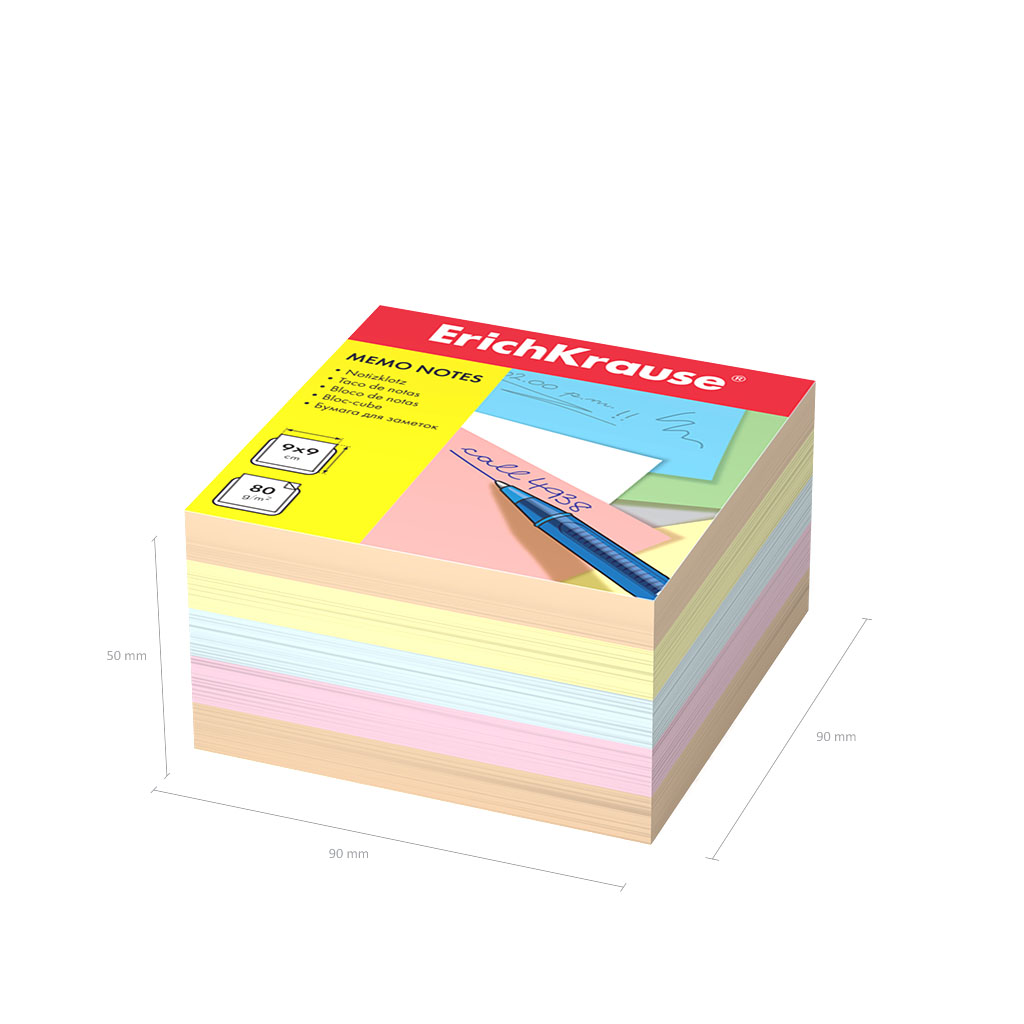 Бумага для заметок ErichKrause, 90x90x50 мм, 4 цвета |