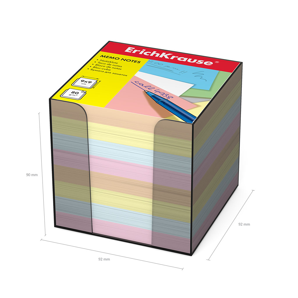 Бумага для заметок ErichKrause, 90x90x90 мм, 4 цвета, в пластиковой подставке |