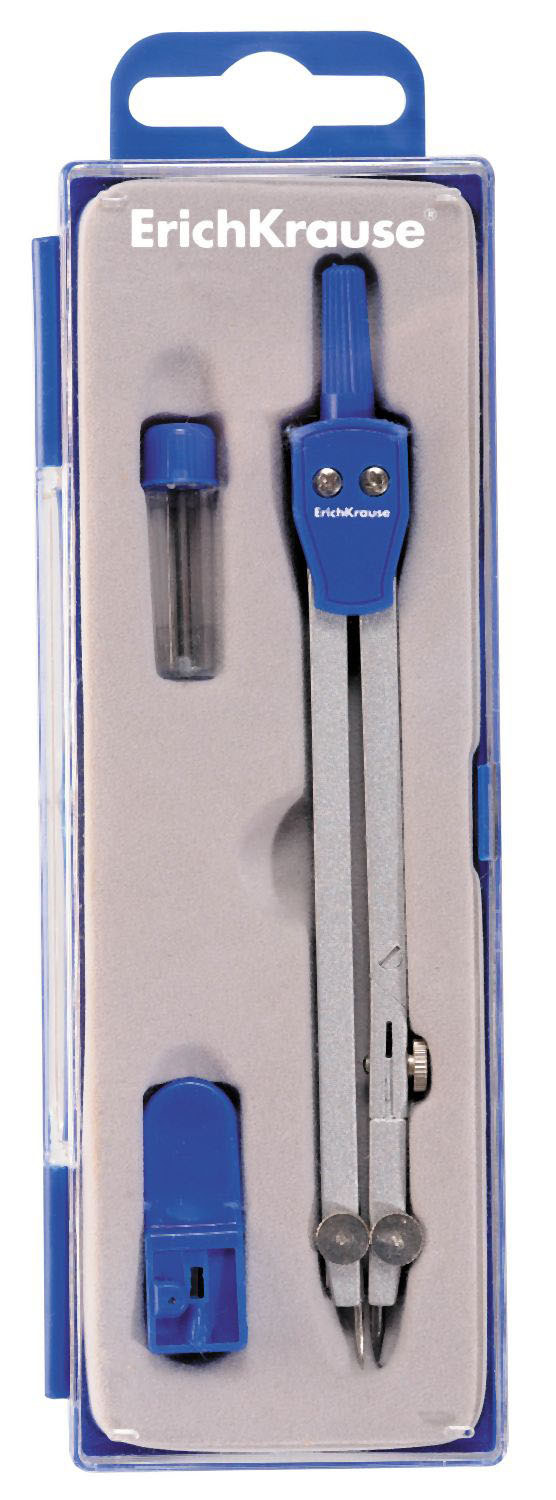 Металлический циркуль с одной сгибаемой ножкой и максимальным радиусом 21.8см. В комплект входят точилка и сменный грифель в пластиковом контейнере. Упакован в удобный пластиковый футляр с европодвесом. |