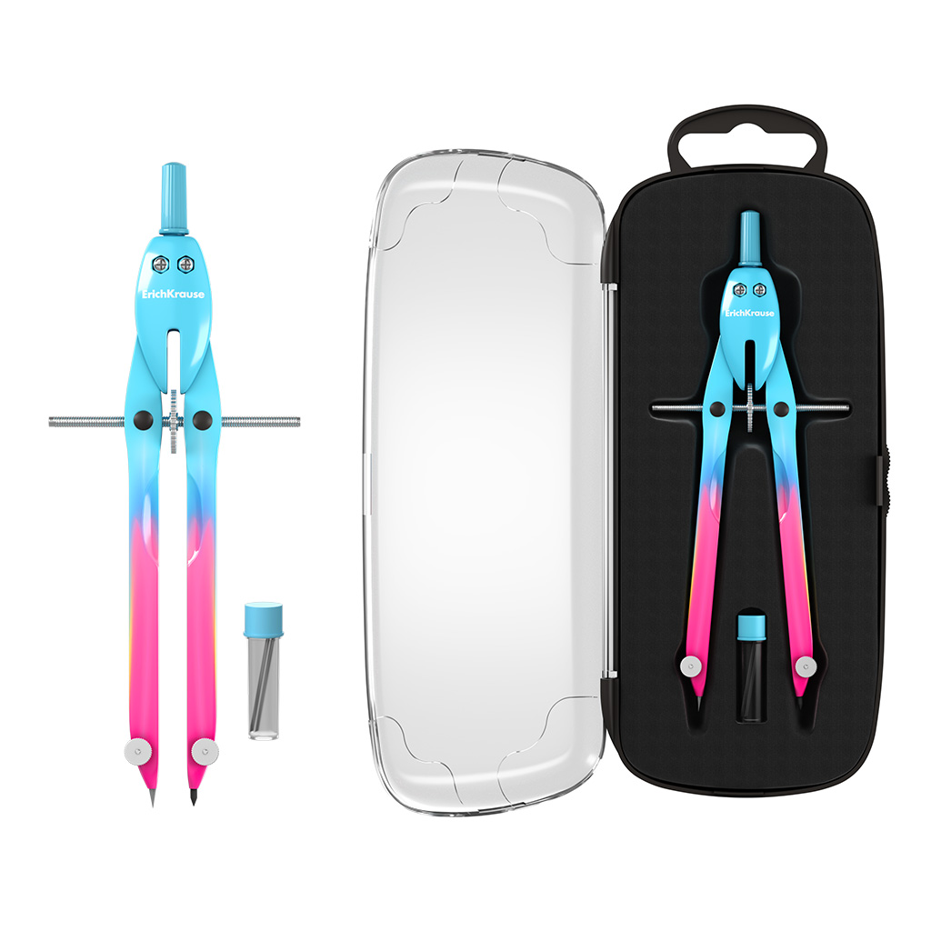 Готовальня ErichKrause CoolRay, (металлический циркуль и сменные грифели), пенал, ассорти |