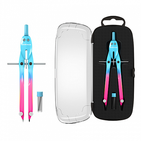 Готовальня ErichKrause CoolRay, (металлический циркуль и сменные грифели), пенал, ассорти