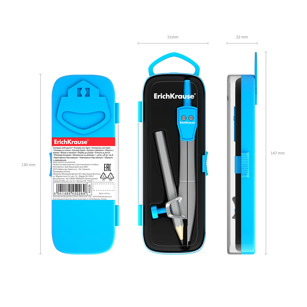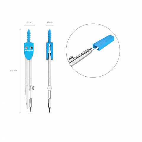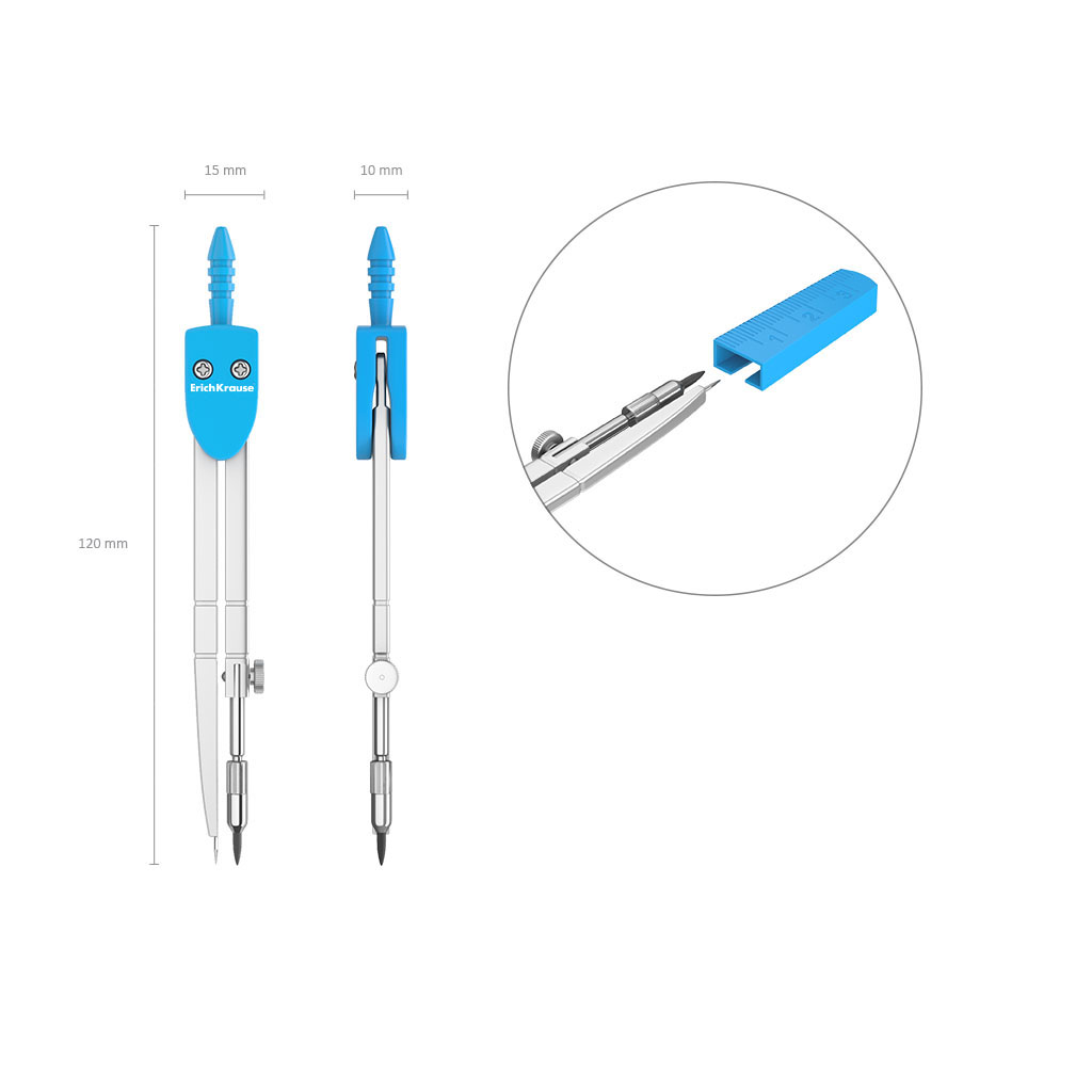 Циркуль металлический ErichKrause Neon, 120мм, флоупак, голубой |