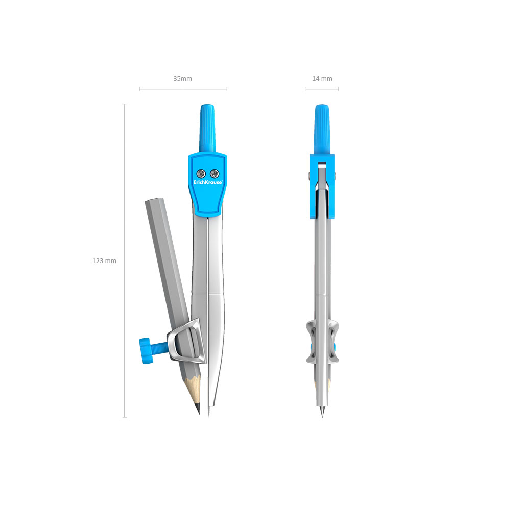 Металлический циркуль с максимальным радиусом 180 мм. Пластиковый чехол с линейкой обеспечивает защиту иглы и пишущего узла. Упакован в удобный пластиковый футляр с европодвесом. |