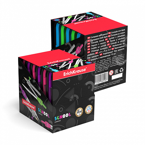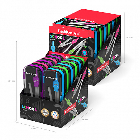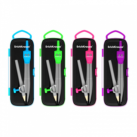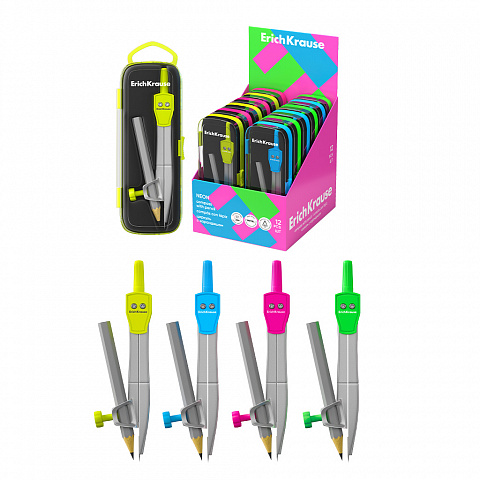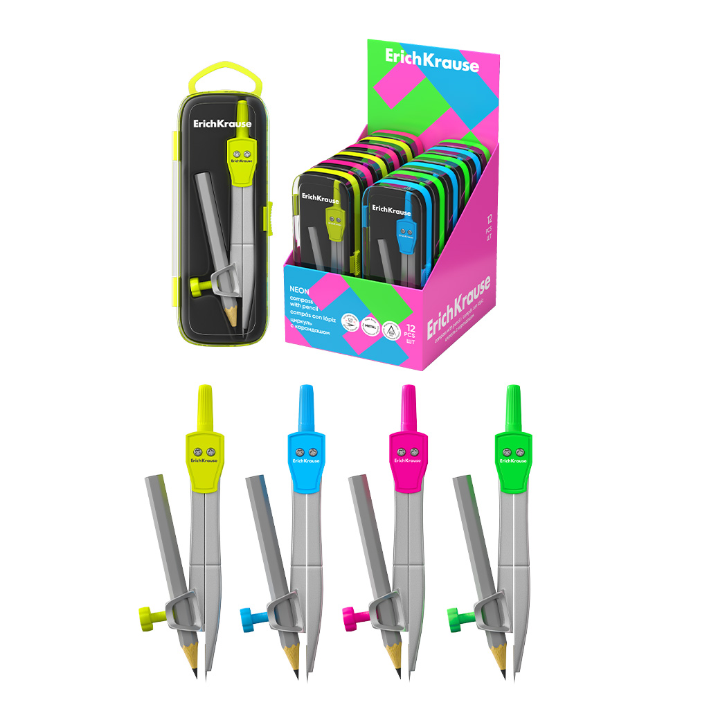 Циркуль металлический ErichKrause Neon, 123мм, с карандашом, пенал, ассорти (в коробке-дисплее по 12 шт) |
