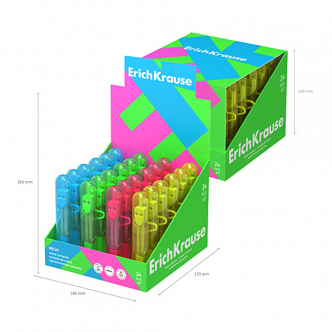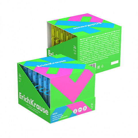 Циркуль металлический ErichKrause Neon, 120мм, пенал, ассорти (в коробке-дисплее по 24 шт) |