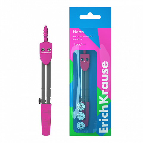 Циркуль металлический ErichKrause Neon, 120мм, флоупак, розовый