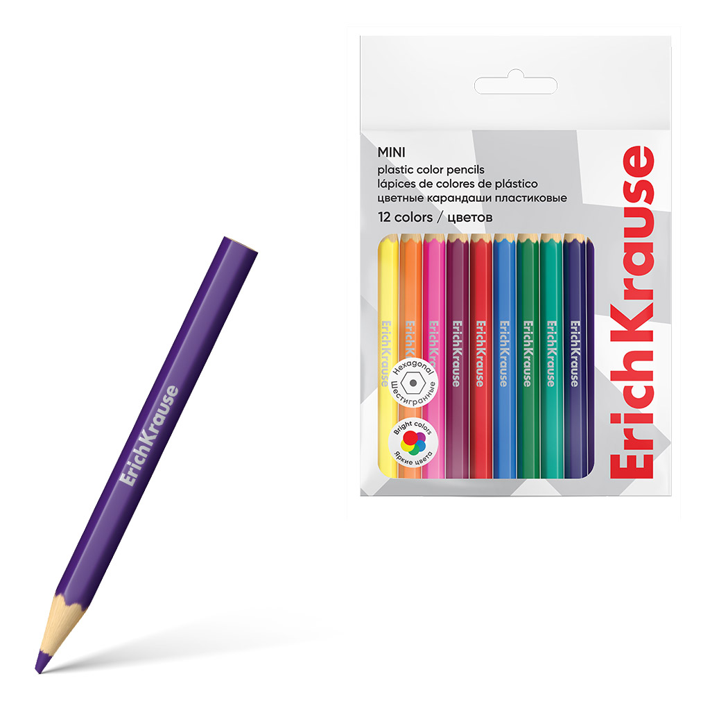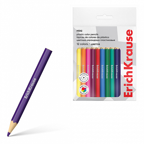 Цветные карандаши пластиковые ErichKrause мини шестигранные 12 цветов (во флоупаке с европодвесом 12 шт) |