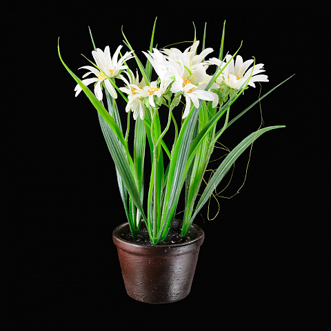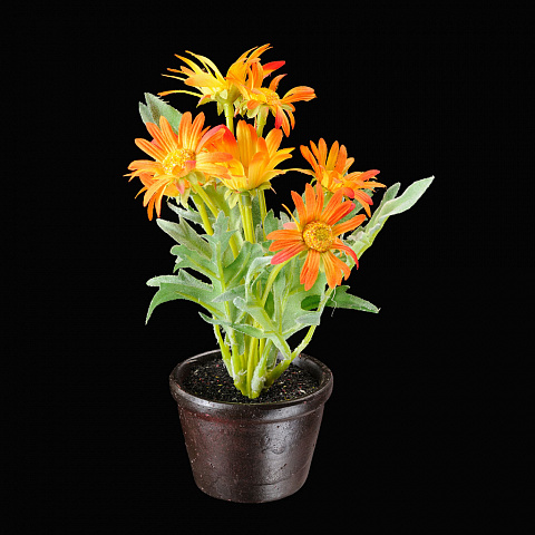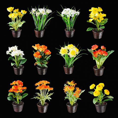 Оригинальная цветочная композиция, выполненная из текстиля - интересное решения для оформления интерьера дома или дачи. Горшок сделан из пластика. Упаковка - дисплей из 12 шт. |