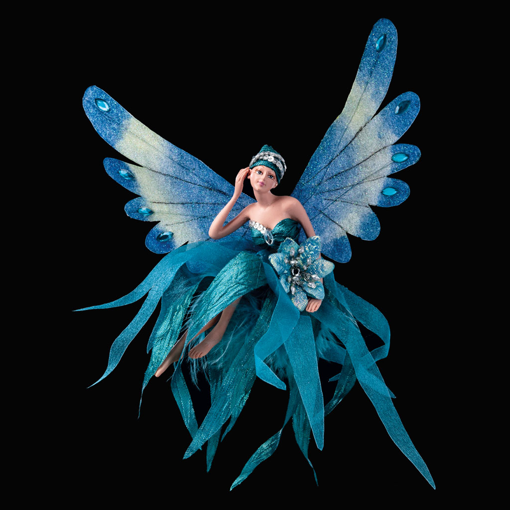 Крылья изящной феи декорированы стразами.Украшение требует аккуратного отношения - конечности феи могут сломаться при падении. Упаковка - индивидуальная белая коробка, украшение внутри зафиксировано. |