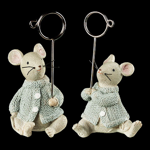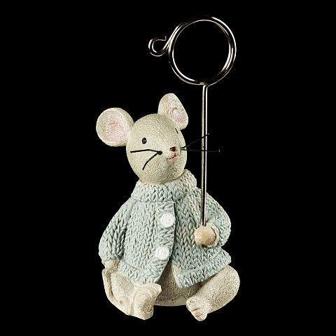 Мышонок в свитере с весело торчащими усиками - оригинальный презент к году Мыши. Изделие отличается компактным размером и тонко прорисованными деталями. Металлическое кольцо прочно фиксирует фотографию или визитную карточку. Товар поставляется в нескольких вариантах… |