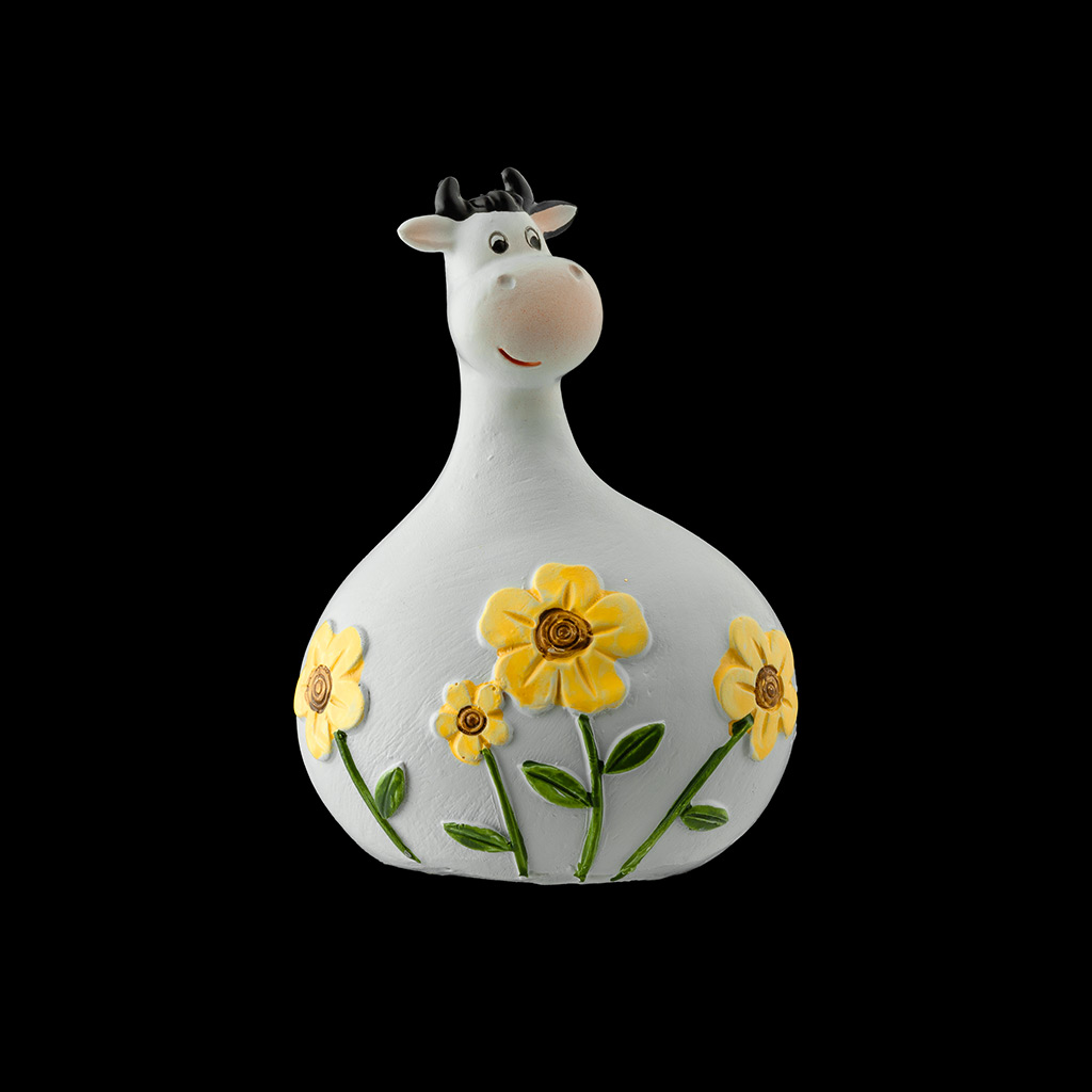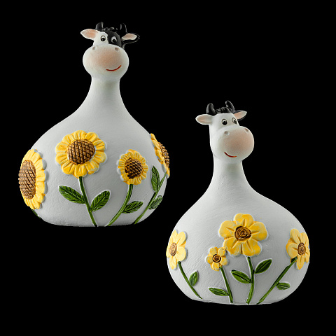 2021 - Новый год Коровы или Быка. Небольшой настольный сувенир станет милым и уместным презентом к празднику. Изделие отличается необычным дизайнерской формой - маленькая голова на длинной шее плавно переходит в к круглому основанию, декорированному цветами. Групповая упаковка предназначена только для безопасной транспортировки и хранения. |