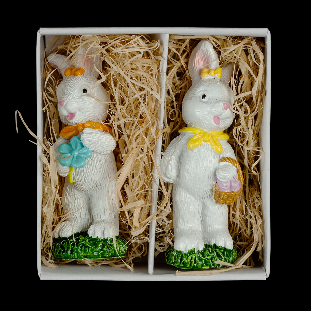 Встречайте Пасху вместе с Erich Krause! Набор состоит из 2 фигурок пасхальных кроликов. Каждое изделие лежит в искусственном сене. Можно использовать как символичный презент цельным набором, а также дарить поштучно. Упаковка - белая коробка с разделителем и ПЭТ-крышкой. |
