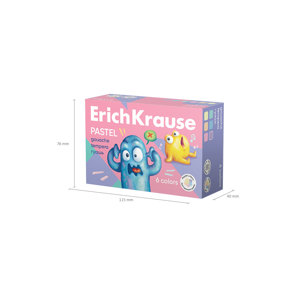 Гуашь ErichKrause Jolly Friends Pastel 6 цветов по 20 мл (в коробке 6 шт)