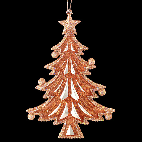 Елочка, выполненная в благородном цвете розового золота, имеет красивую рельефную текстуру и декорирована сверкающими блестками. Верхушка елки украшена звездой, а на концах ветвей елки уютно расположились миниатюрные шарики. Упаковка - полибэг. |