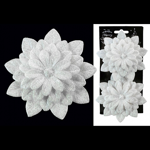 Набор состоит из двух белых цветков, выполненных из пластика. Диаметр каждого изделия 11 см. При помощи аккуратного металлического клипа Вы можете прикрепить украшение на еловую ветку или использовать его в оформлении интерьера. Упаковка - картонная подложка с европодвесом размещена внутри полибэга. |