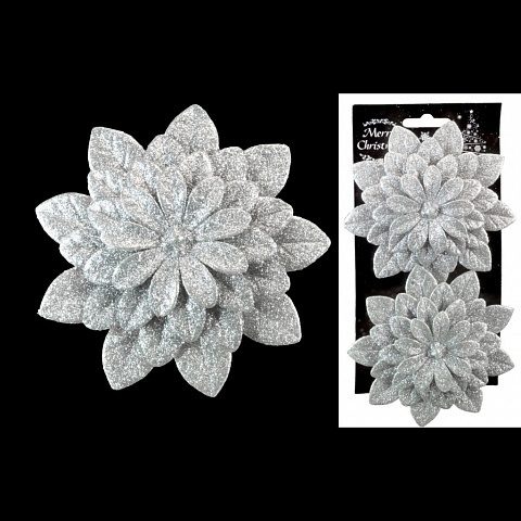 Набор ErichKrause® 2 украшения Цветок серебряный на клипе 11см