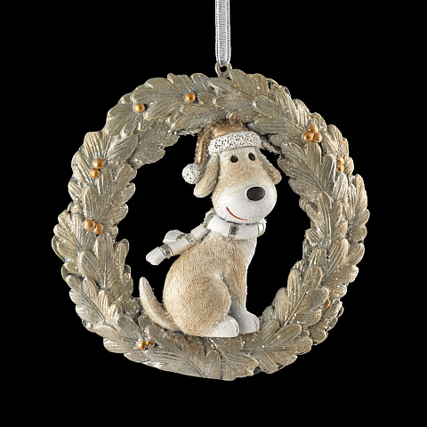 Новогодний венок - один из популярных атрибутов праздника, пришедший к нам с Запада. Нежный оттенок пастели подчеркивают золотые вкрапления и сверкающие блестки. В центре композиции находится милый песик. Групповая упаковка предназначена только для безопасной транспортировки и хранения. |