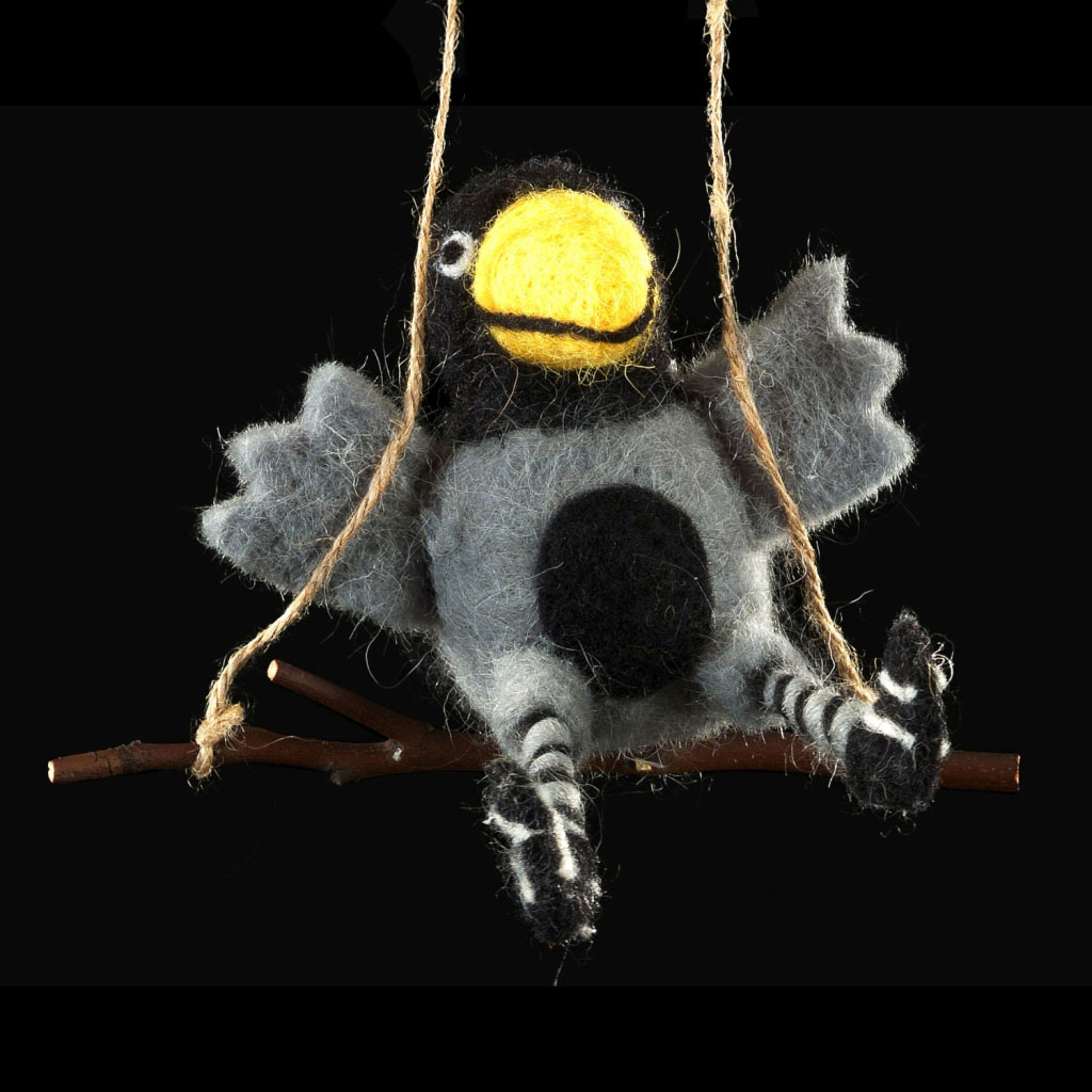 Сувениры из валяной шерсти являются модным Трендом сезона. Ворона на качелях с черным кругом на пузе выглядит крайне весело и поднимает настроение только одним своим оптимистичным видом. Изделие легко вешается за веревочную часть качелей, но также будет убедительно… |