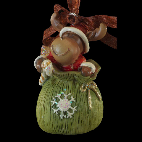 Маленькая фигурка лося в мешке Деда Мороза выполнена из полирезины. Подходит для декорирования небольшой ёлочки, а также в качестве очаровательного сувенира к Новому году. Изделие оснащено красивой ленточкой для подвешивания. Групповая упаковка предназначена… |