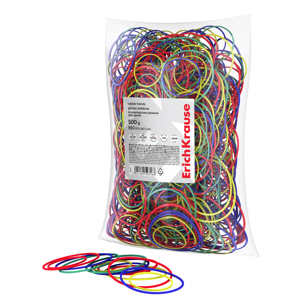 Канцелярские резинки для денег ErichKrause диаметр 40 мм, 60 мм/длина 60 мм, 100 мм, ассорти (в пакете по 500г.)