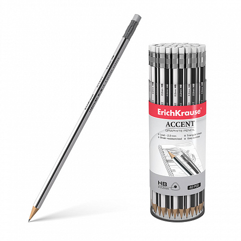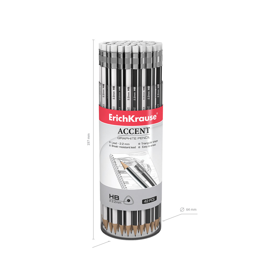 Чернографитный трехгранный карандаш с ластиком ErichKrause® Accent HB (в тубусе по 42шт.)