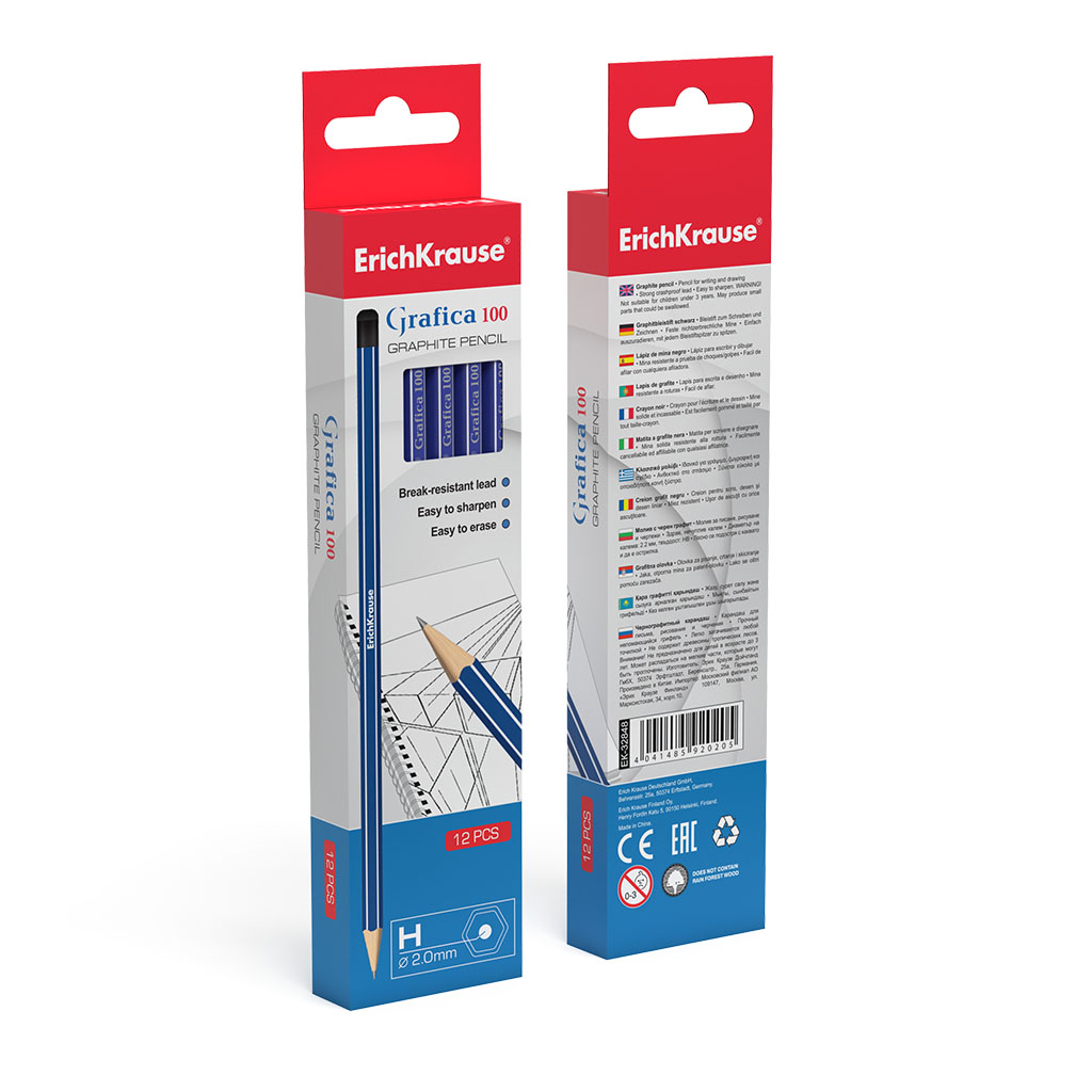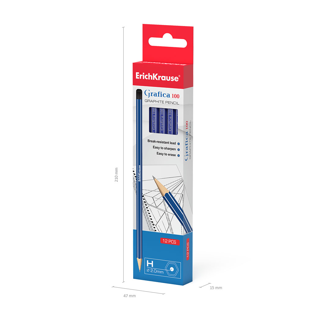 Чернографитный шестигранный карандаш ErichKrause® Grafica 100 H (в коробке по 12шт.) |