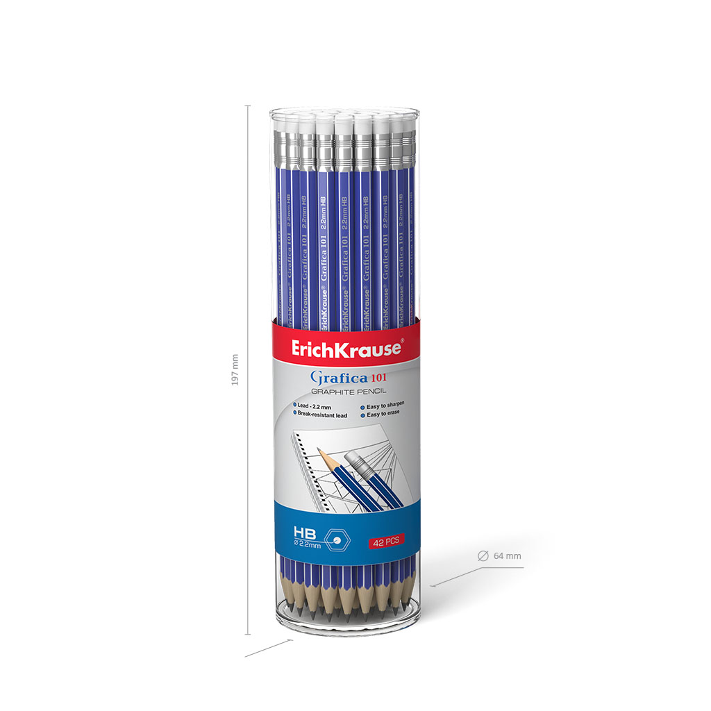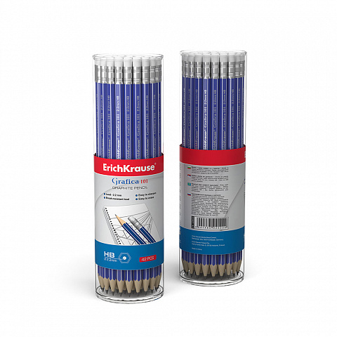 Чернографитный шестигранный карандаш с ластиком ErichKrause® Grafica 101 HB (в тубусе по 42 шт.) |