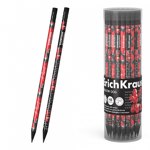 Чернографитный карандаш ErichKrause Balloon Dog, трехгранный, с ластиком, НВ (в тубусе по 42 шт.) |