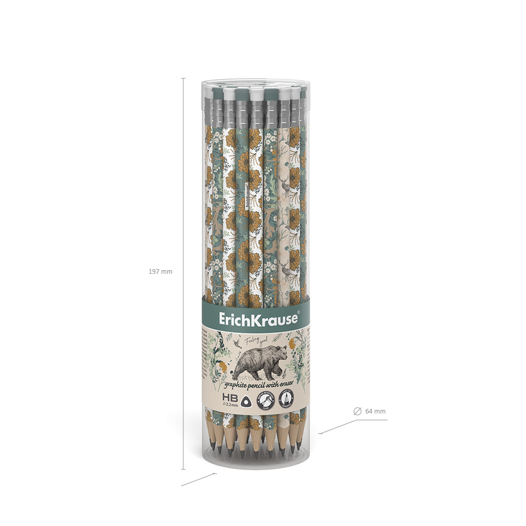 Чернографитный карандаш ErichKrause Natural Life, трехгранный, с ластиком, HB (в тубусе по 42 шт.)