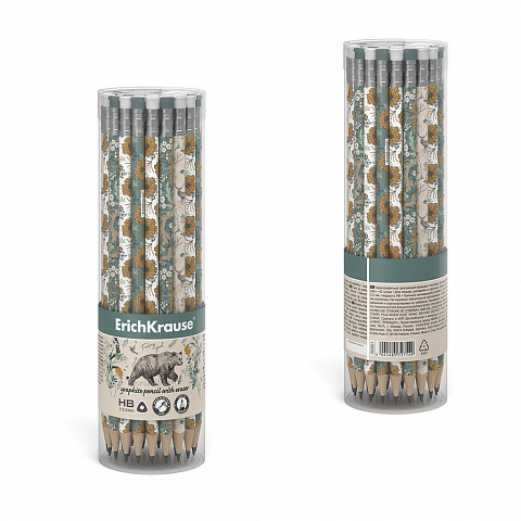 Чернографитный карандаш ErichKrause Natural Life, трехгранный, с ластиком, HB (в тубусе по 42 шт.) |