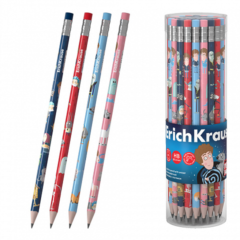 Чернографитный карандаш ErichKrause Приключения Пети и Волка, круглый, с ластиком, HB (в тубусе по 42 шт.) |