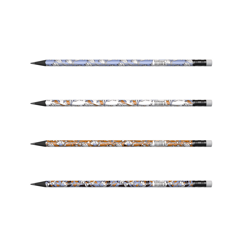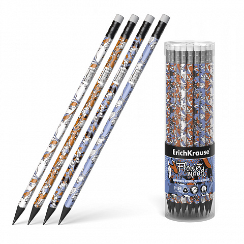 Чернографитный карандаш ErichKrause Tulips, трехгранный, с ластиком, HB (в тубусе по 42 шт.) |