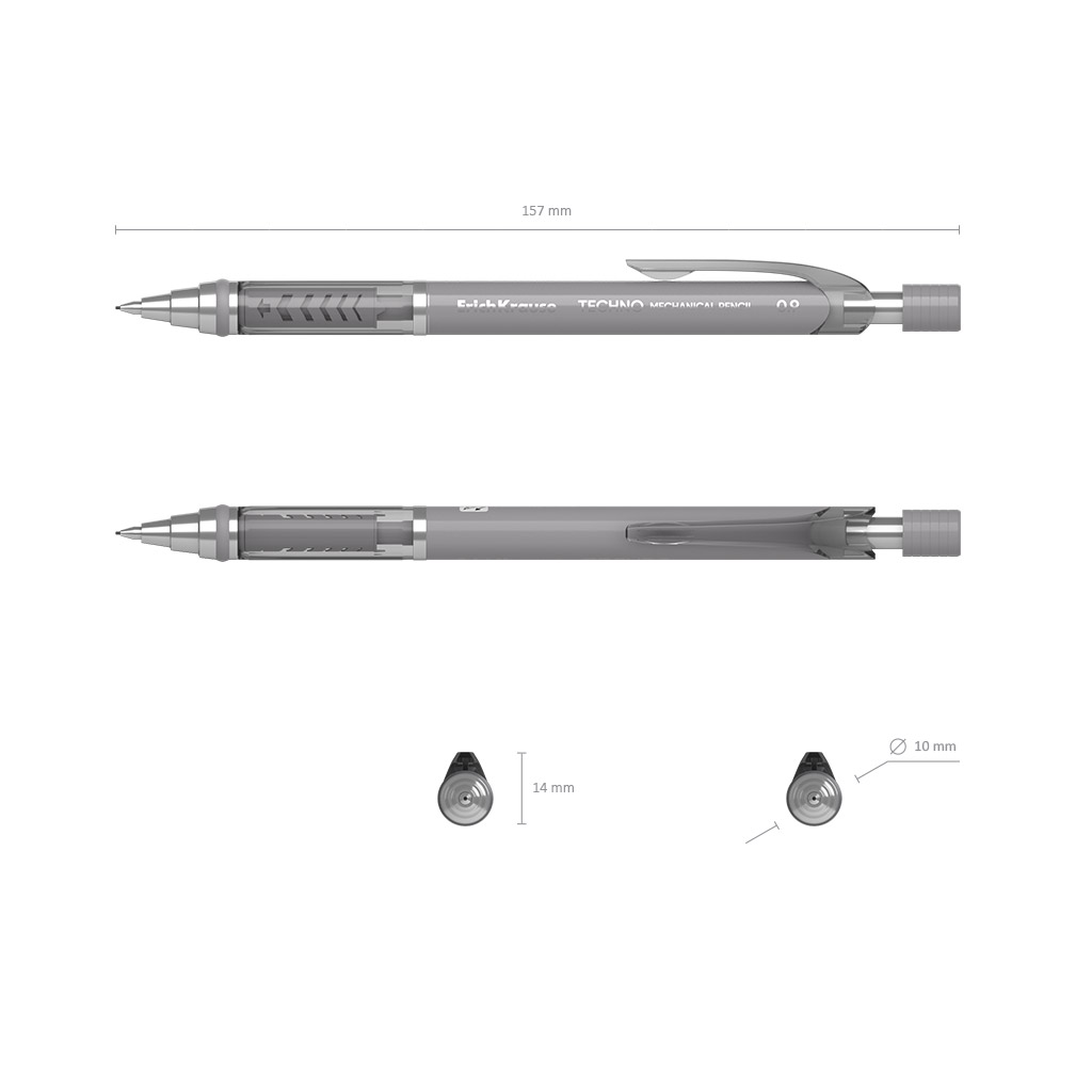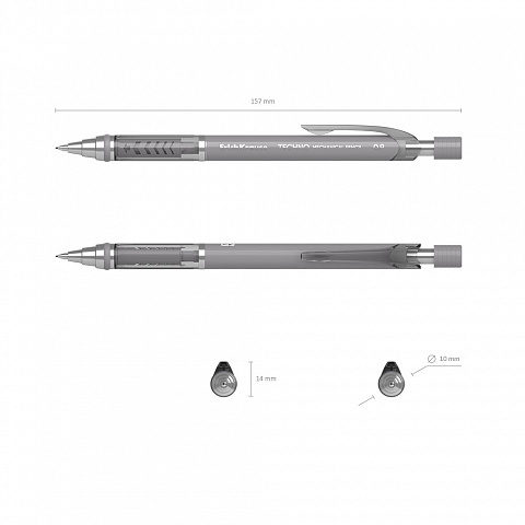 Механический карандаш круглой формы с профилированной зоной упора, металлической цангой и автоподачей грифеля. Корпус в двух цветах - темно-графитовый и светло-графитовый. Оснащен ластиком, закрывающимся колпачком и удобной полупрозрачной клипсой. Твердость ТМ. Диаметр… |