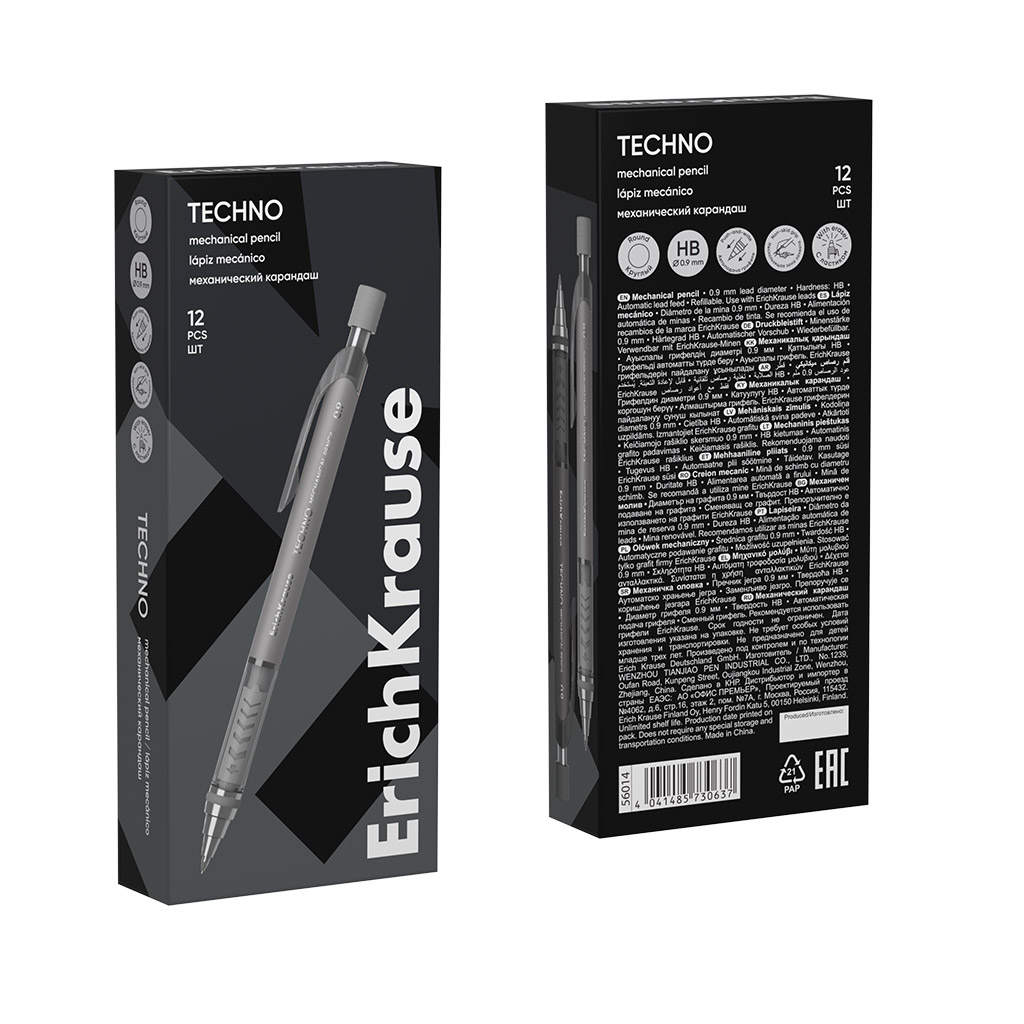 Карандаш механический ErichKrause Techno 0.9 мм, с автоматической подачей грифеляHB (в коробке 12 шт.)