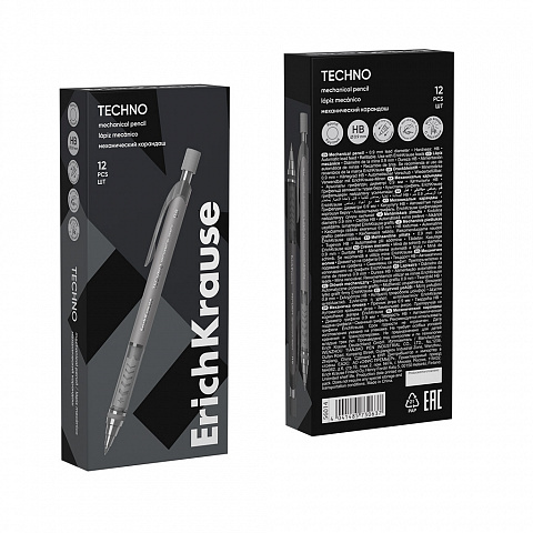 Карандаш механический ErichKrause Techno 0.9 мм, с автоматической подачей грифеляHB (в коробке 12 шт.) |