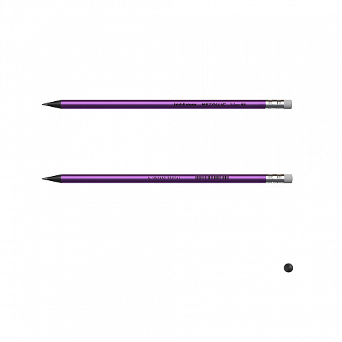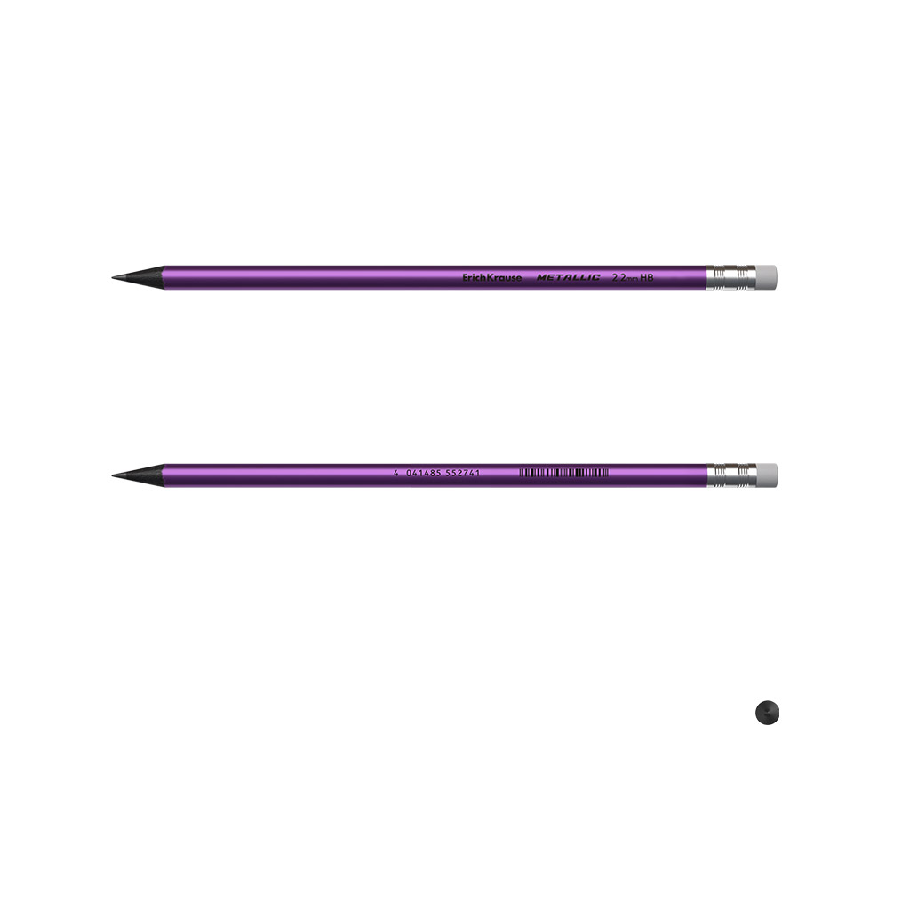 Чернографитный карандаш пластиковый ErichKrause JOY® Metallic, круглый, с ластиком, HB (в тубусе по 42 шт.)