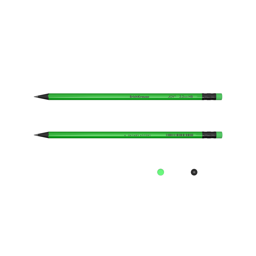 Чернографитный карандаш пластиковый ErichKrause JOY® Neon, круглый, с ластиком, HB (в тубусе по 42 шт.) |