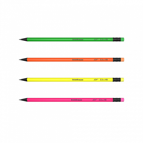 Набор из 4 чернографитных карандашей пластиковых ErichKrause JOY® Neon, круглых, с ластиком, HB (в пакете) |