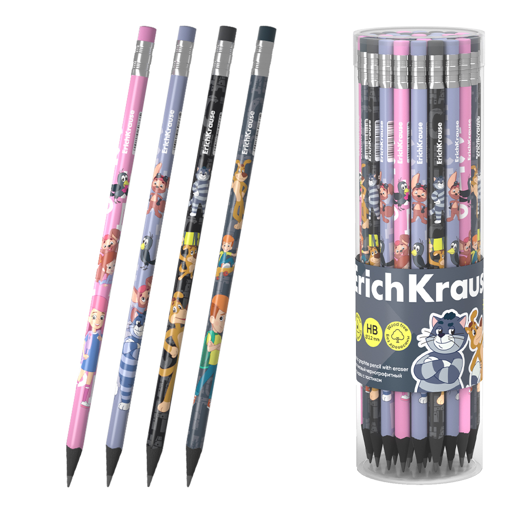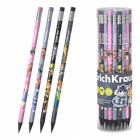 Чернографитный карандаш пластиковый ErichKrause Простоквашино, трехгранный, с ластиком, HB (в тубусе по 42 шт.)