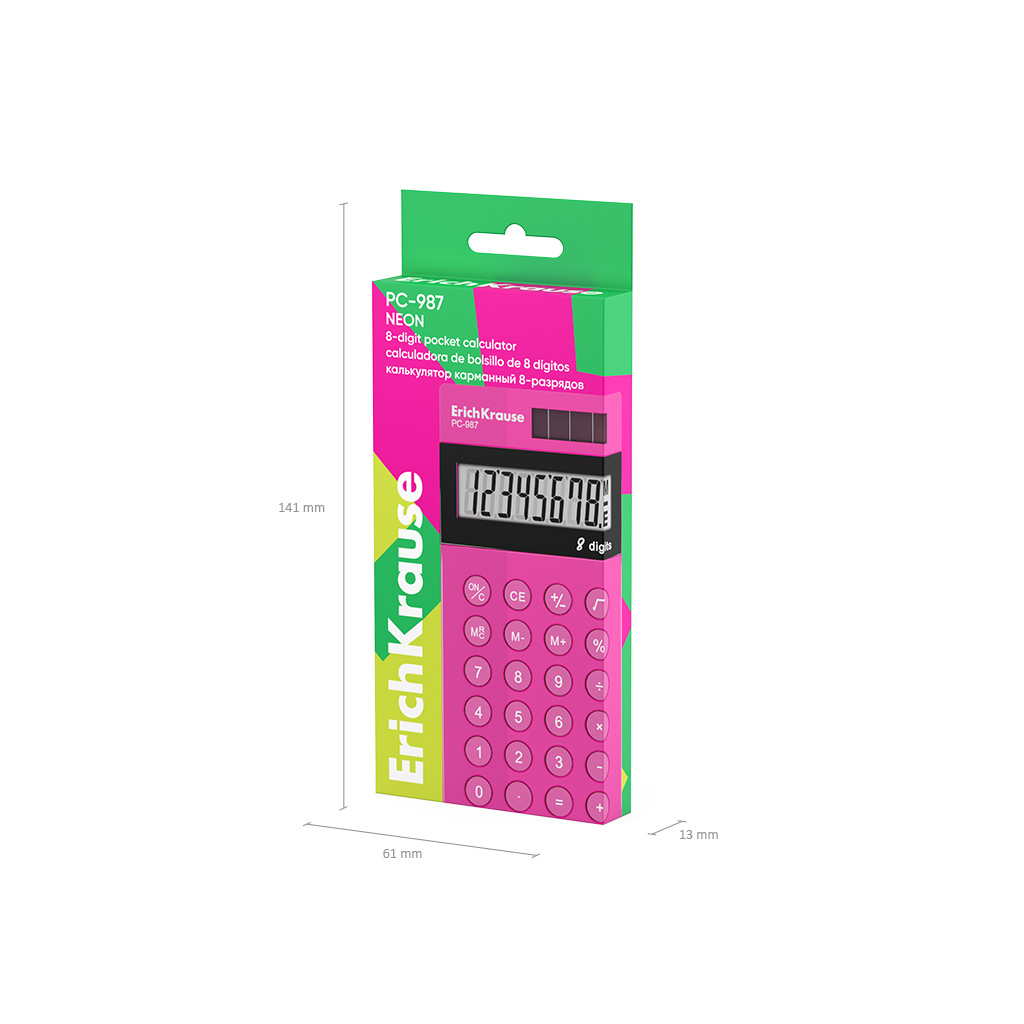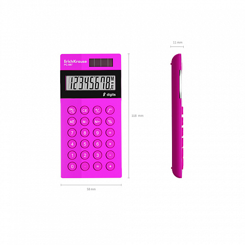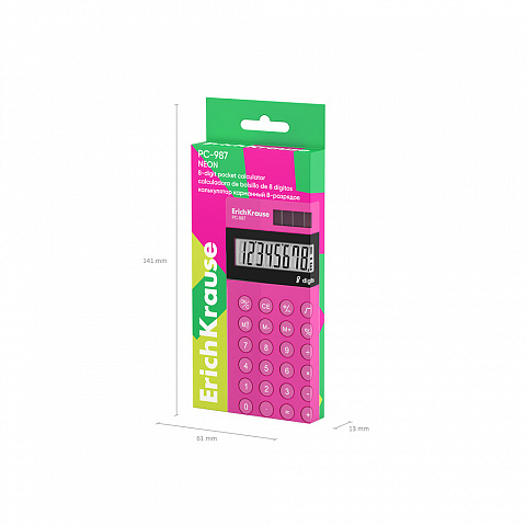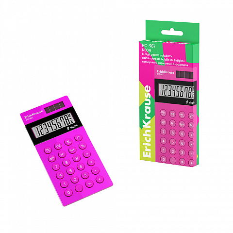 Калькулятор карманный 8-разрядов ErichKrause PC-987 Neon, розовый (в коробке по 1 шт.)