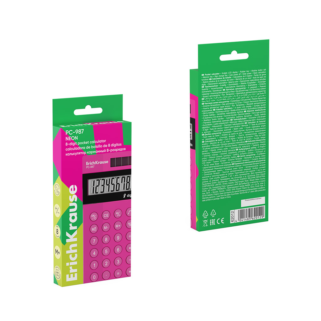 Калькулятор карманный 8-разрядов ErichKrause PC-987 Neon, розовый (в коробке по 1 шт.) |