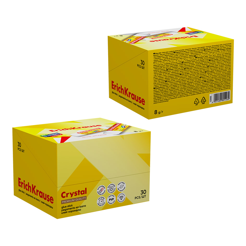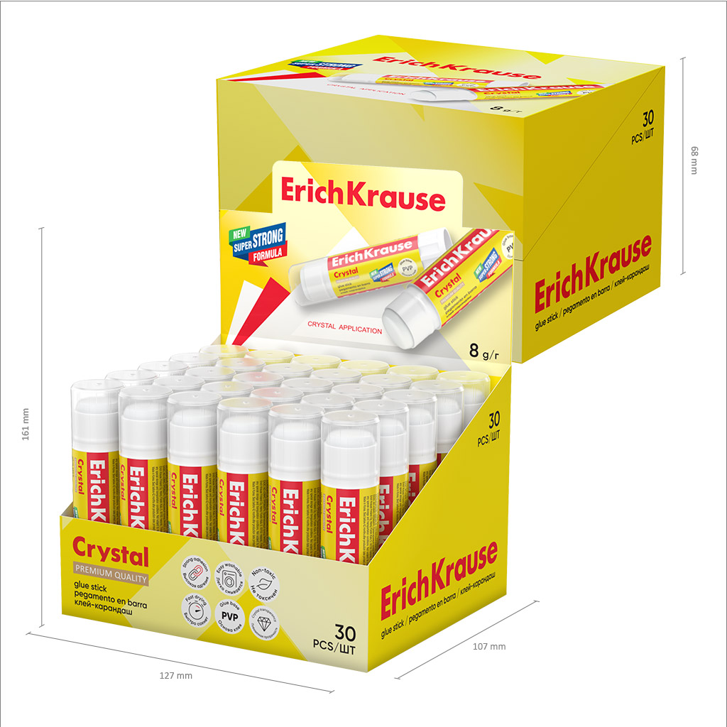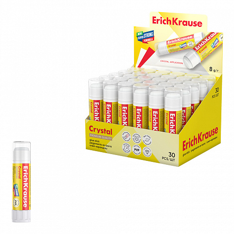 Клей-карандаш ErichKrause Crystal, повышенной прозрачности, 8г (в коробке-дисплее по 30 шт.) |